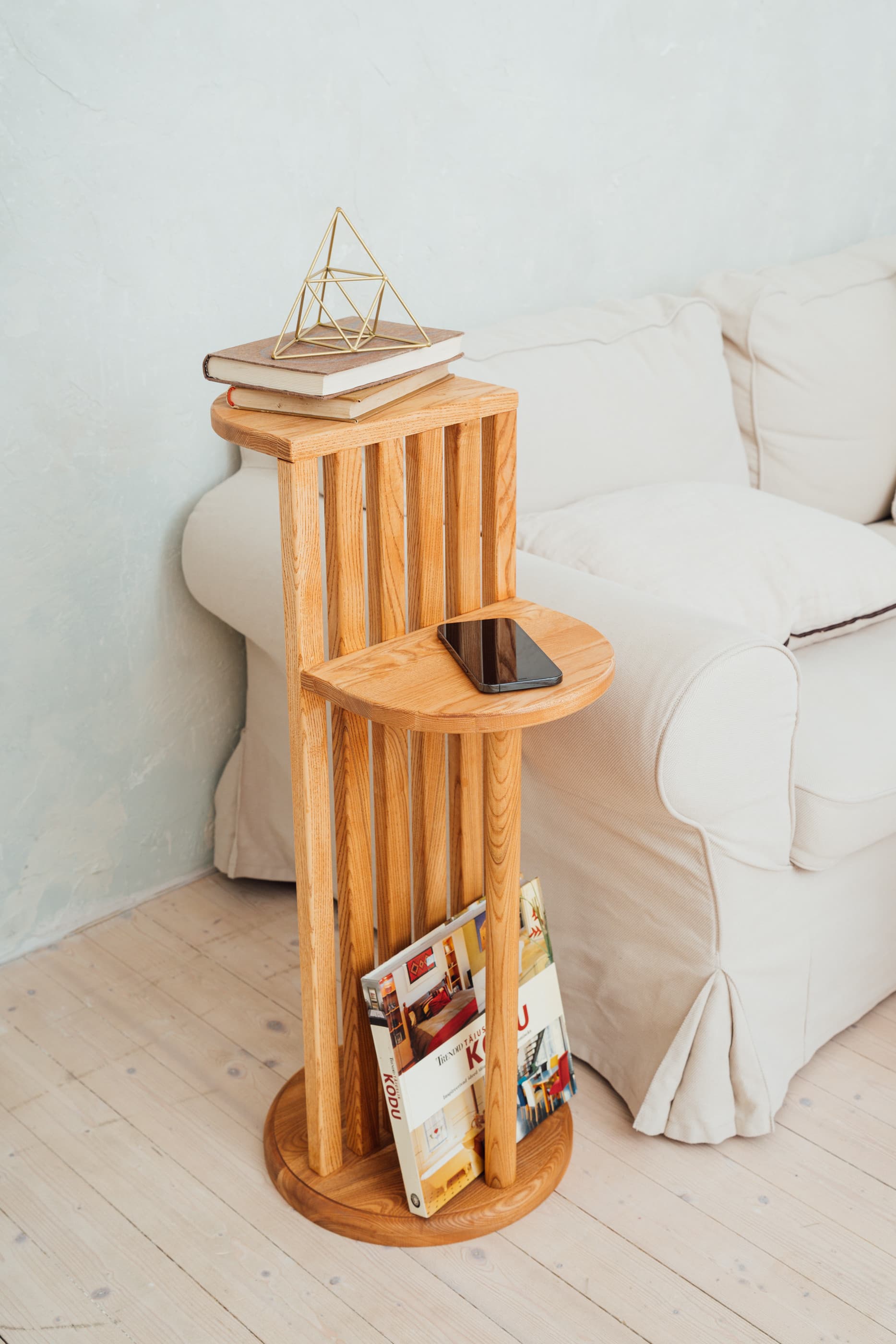 Saarepuust, OSMO õliga viimistletud kahetasandiline abilaud kompaktsemas mõõdus. Kahe tasapinna lahendus loob praktilise ja selge struktuuri – ülemine pind esiletõstmiseks, alumine lisaruumiks.