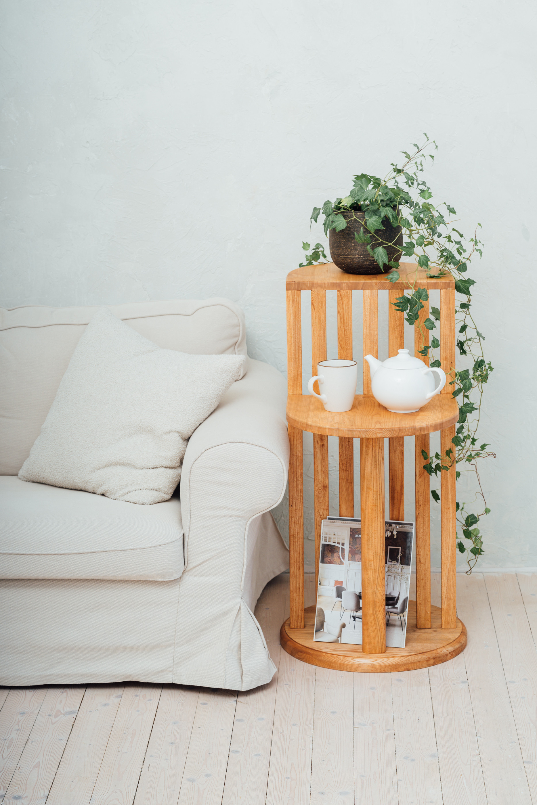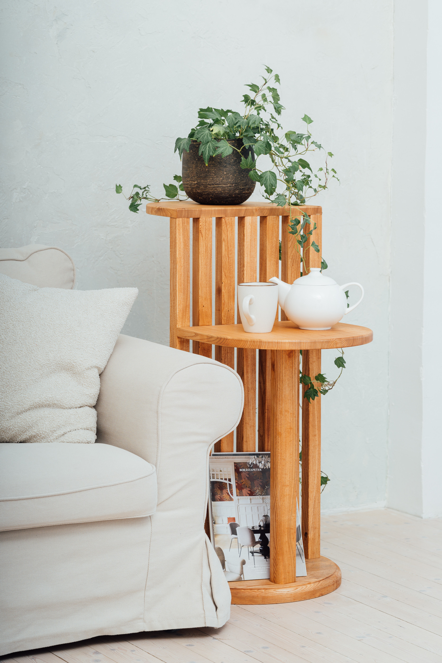 Saarepuust, OSMO õliga viimistletud ühetasandiline abilaud elutuppa või magamistuppa. Selge vorm ja tasakaalus proportsioonid teevad sellest eseme, mis ei vaja liigset tähelepanu – ta mõjub oma vaikuses.