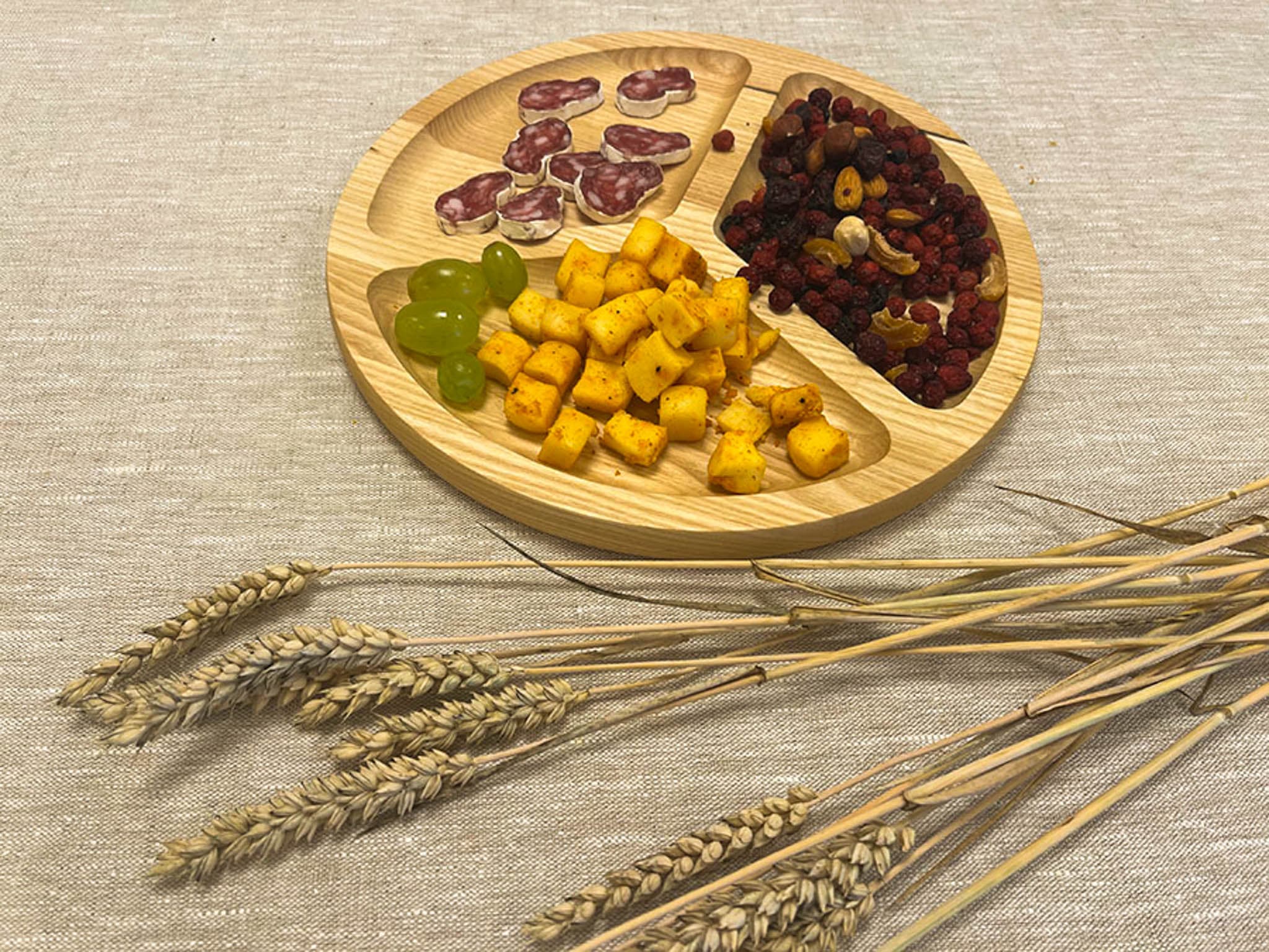 Kaunis ja kvaliteetne saarepuust serveerimisalus kööki. Saare puidutekstuur on tähelepandavalt väljendusrikas ja särav. Saar on lisaks sama tihe kui tammepuu ehk saarest serveerimisalus on sama tugev ja vastupidav kui tammepuust serveerimisaluski. Serveerimisaluse kolmel eraldatud osal on hea serveerida suupisteid, pähkleid, marju, puuviljalõike ja palju muud.
