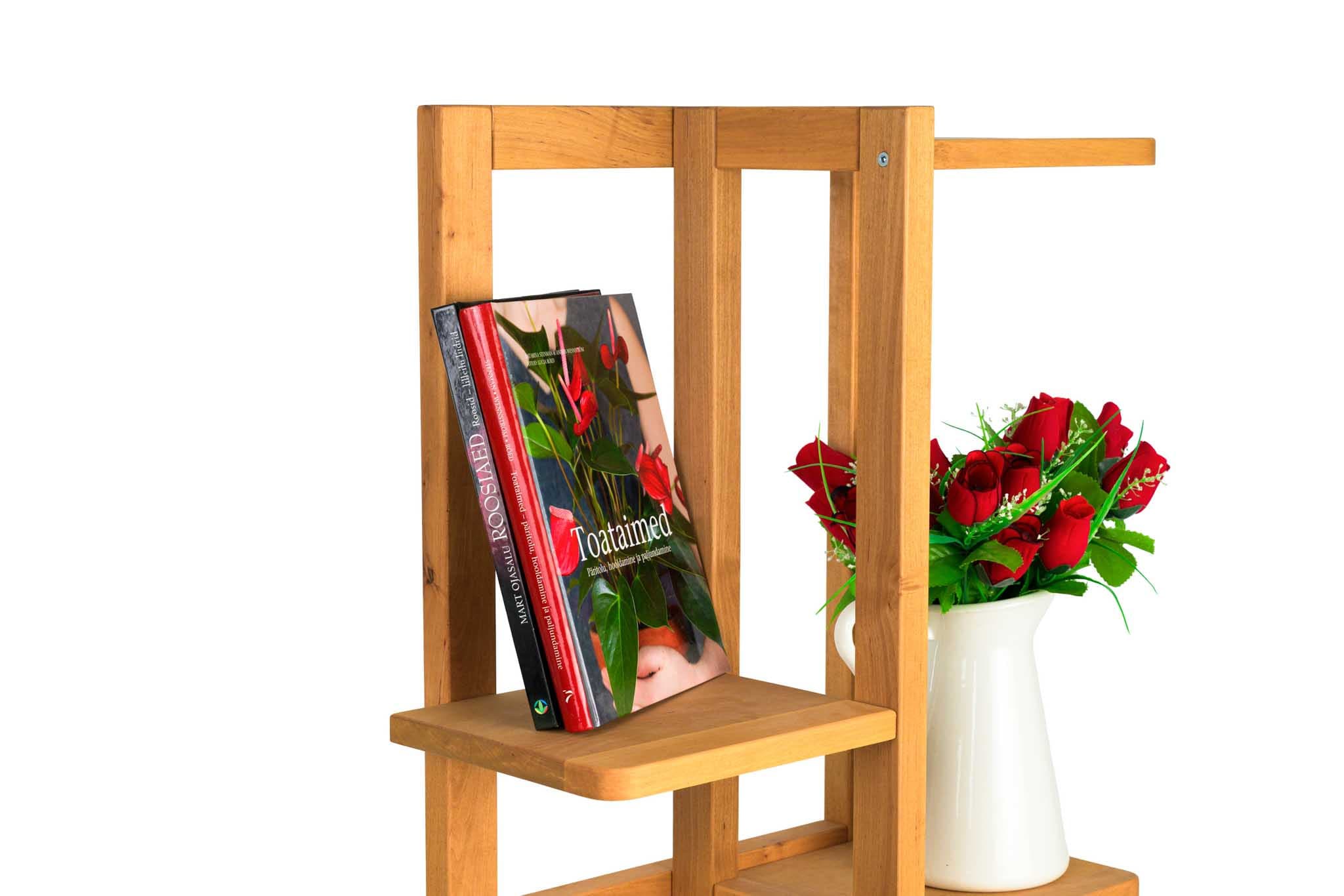 Lepapuust põrandariiul, viimistletud hele tamme tooniga OSMO õliga. Nelja tasandiga, elegantse disainiga riiul taimedele, raamatutele ja dekoratiivsetele esemetele.