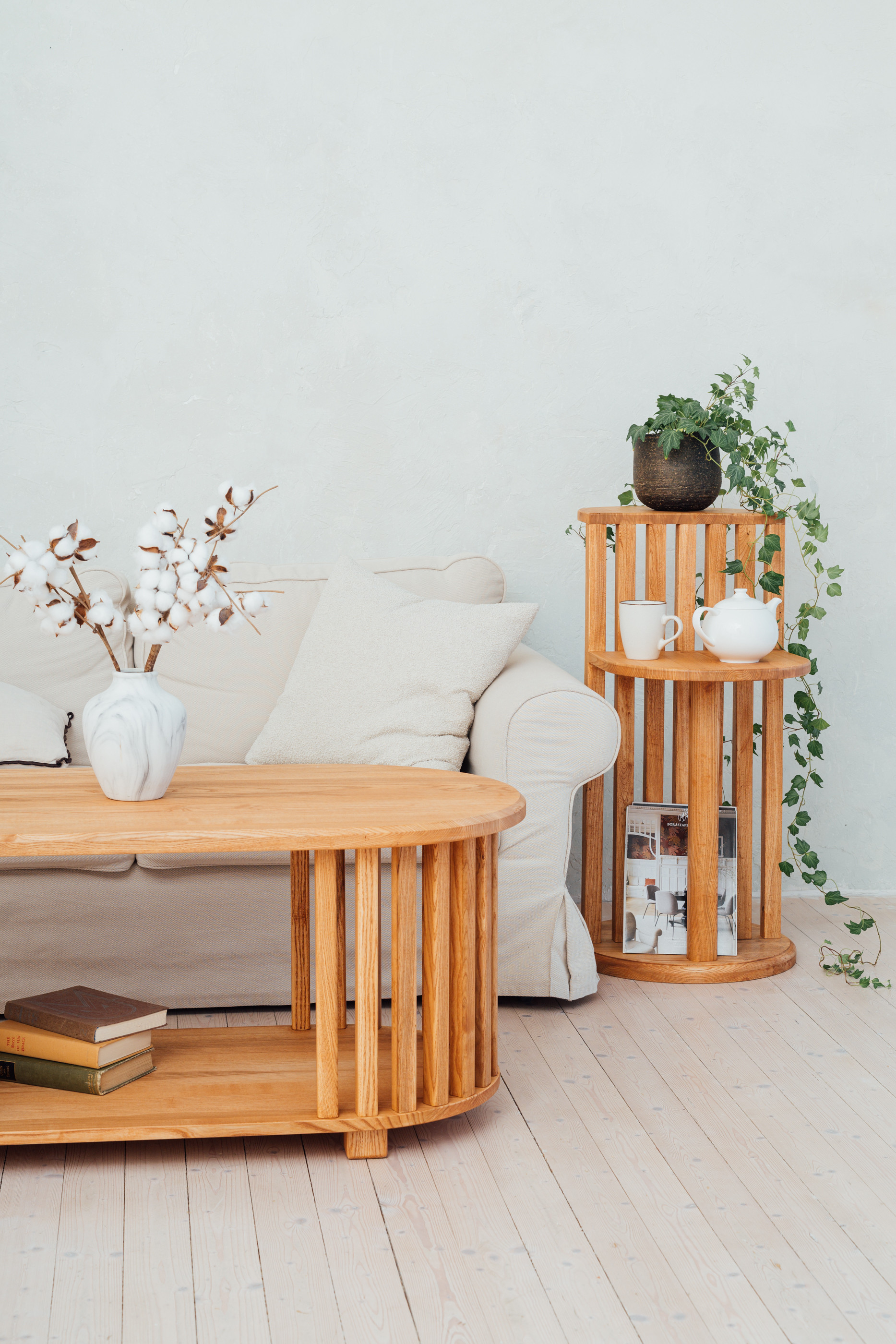 ELIN on täispuidust mööblisari elutuppa: diivanilauad ja abilauad. Eesti disain, käsitööna valmistatud Eestis, ajatu vorm ja arhitektuurne ribistruktuur.