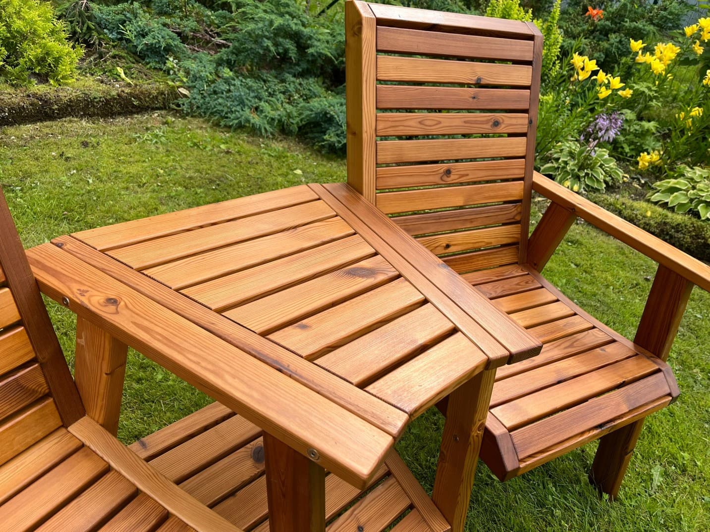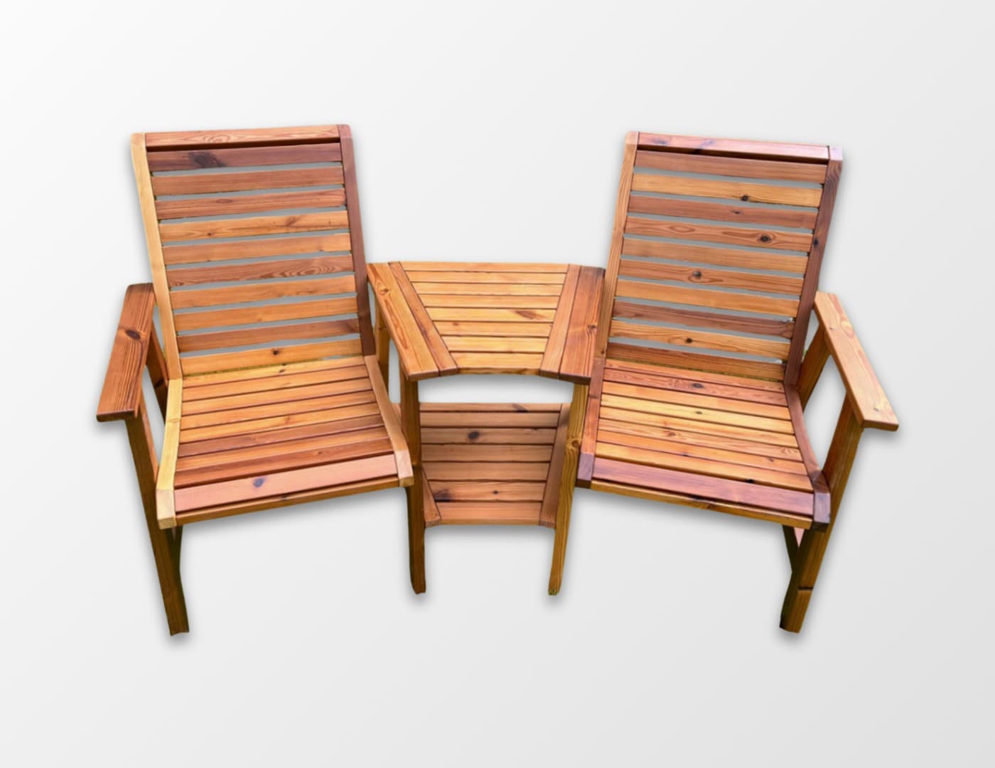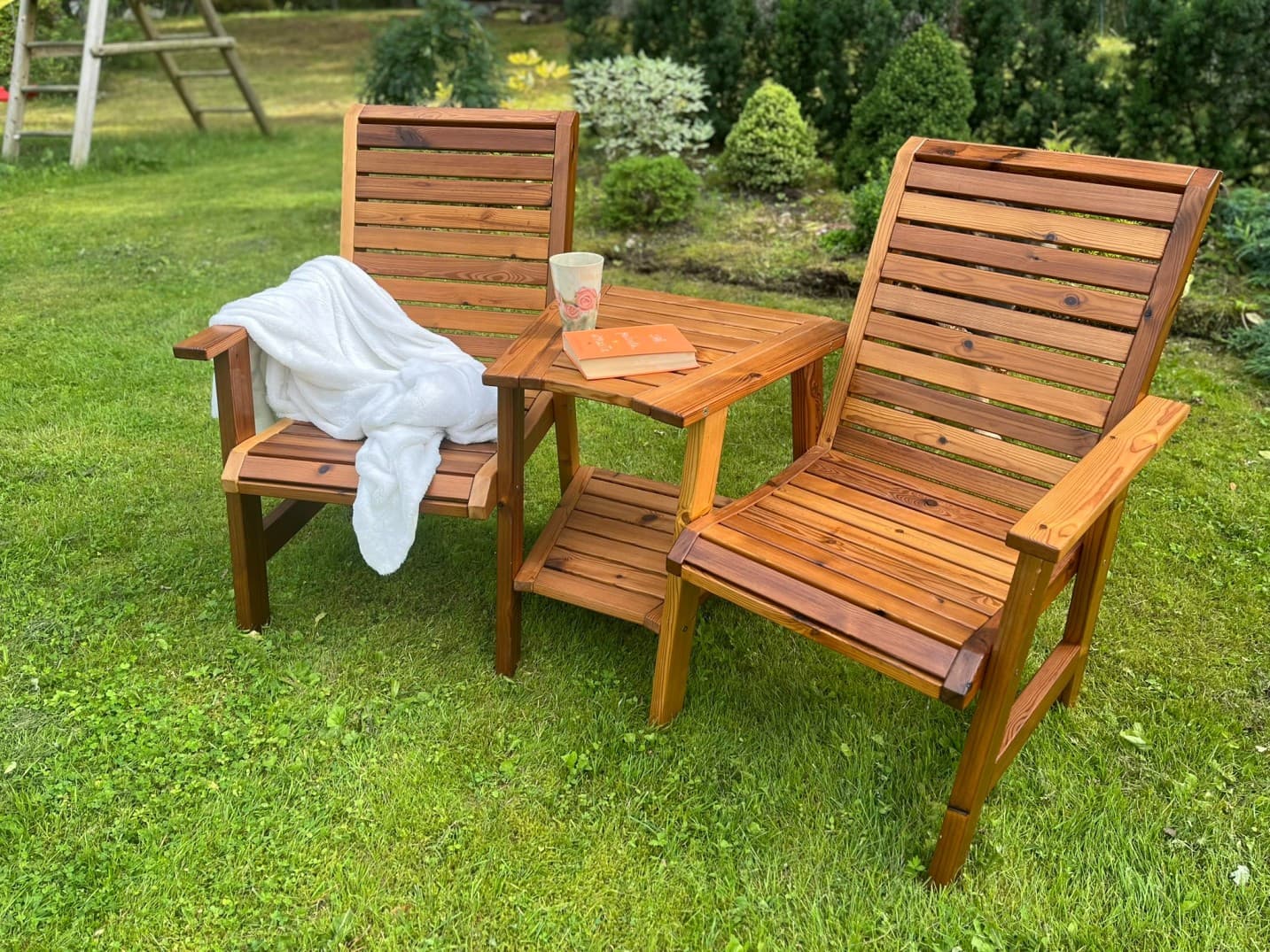 TEELE DUO on täispuidust aiapink, mis ühendab kaks mugavat istekohta, praktilise laua ja alumise riiuli terviklikuks istumisalahenduseks. See on loodud hetkede jaoks, kus tahad aja maha võtta – olgu selleks hommikukohv, õhtune vestlus või lihtsalt vaikne olemine.